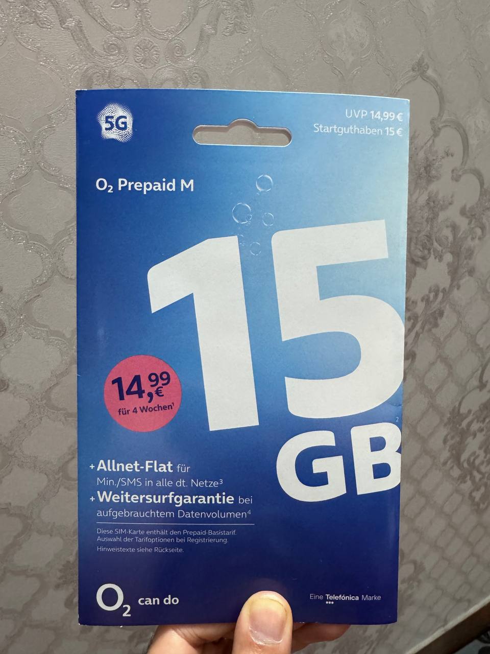 سیم کارت فیزیکی o2 آلمان -همراه 15 یورو شارژ - به نام شخص توسط پاسپورت رجیستر شده و فعال کد +49 ضمانت مرجوعی کلا